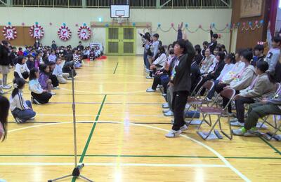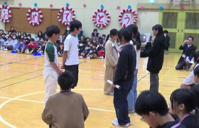 5・6年生の交流バスケットボール大会が行われました。5年生が来年度の市内球技大会やその練習に向けて意識を高めたり、6年生がこれまでバスケットボールを練習してきた技術を5年生に示したりすることを目的にしています。