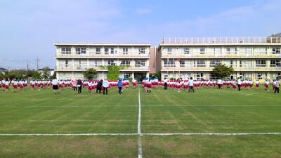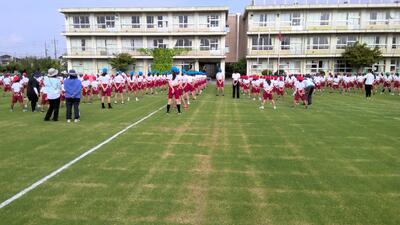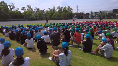 学校全体での運動会練習がスタートしました。本日は練習初日なので、開閉会式の立ち位置や立つ姿勢、休めの姿勢、座り方等の確認と練習をしました。児童は、担当教員の指示をしっかり聞き、素早くきびきびと行動していました。