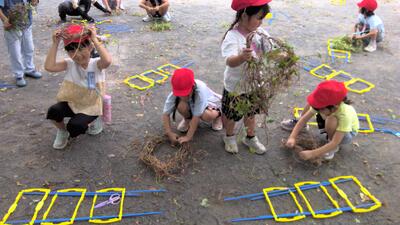 1年生が生活科の学習で、1学期から育てていた朝顔を使い、リース作りを行いました。児童は、自分の朝顔のつるをきれいな円の形に巻き、担任がそれをひもで結びつけていきました。リースの完成が待ち遠しいです。