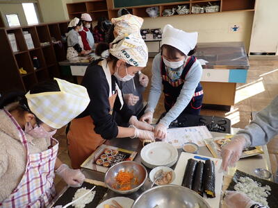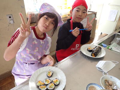 5年生は、現在、総合的な学習の時間において「世界の文化を紹介しよう」をテーマに学んでいます。外国語の授業では、~1番近い外国を知ろう~をテーマに6月と9月にオンラインで韓国のハンソル小学校と交流しました。今日は、韓国教育院主催の「韓国料理体験」で韓国の海苔巻き「キンパ作り」をしました。韓国語で「小さな世界」を歌ったり、いただきますやごちそうさまを韓国語で伝え合ったり、キンパの食材を韓国語で何というかを教えていただいたりしました。巻きすを使って作る体験が初めての児童も多く、楽しんでいました。