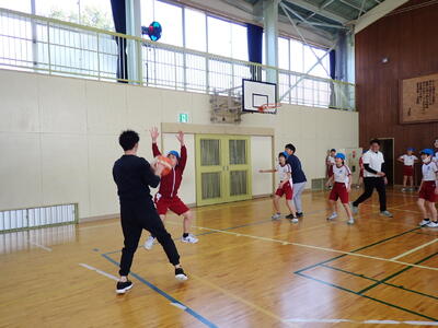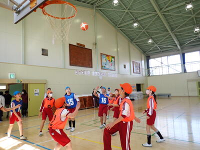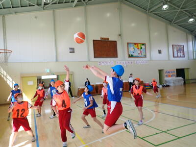 5・6年生の交流バスケットボール大会が行われました。5年生が来年度の市内球技大会やその練習に向けて意識を高めたり、6年生がこれまでバスケットボールを練習してきた技術を5年生に示したりすることを目的にしています。