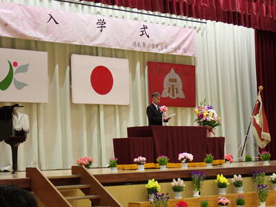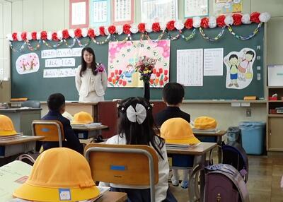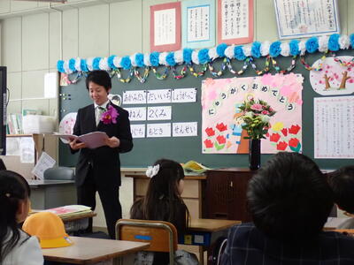 令和8年度が始まり、新1年生38名が、新たに赤一小の仲間入りをしました。校長先生からは、「あいさつとへんじをげんきにしましょう」というお話がありました。また、6年生からは校歌のプレゼントとともに、代表児童からのメッセージがあり、「赤一小の子たちはみんななかよしです」という紹介もありました。